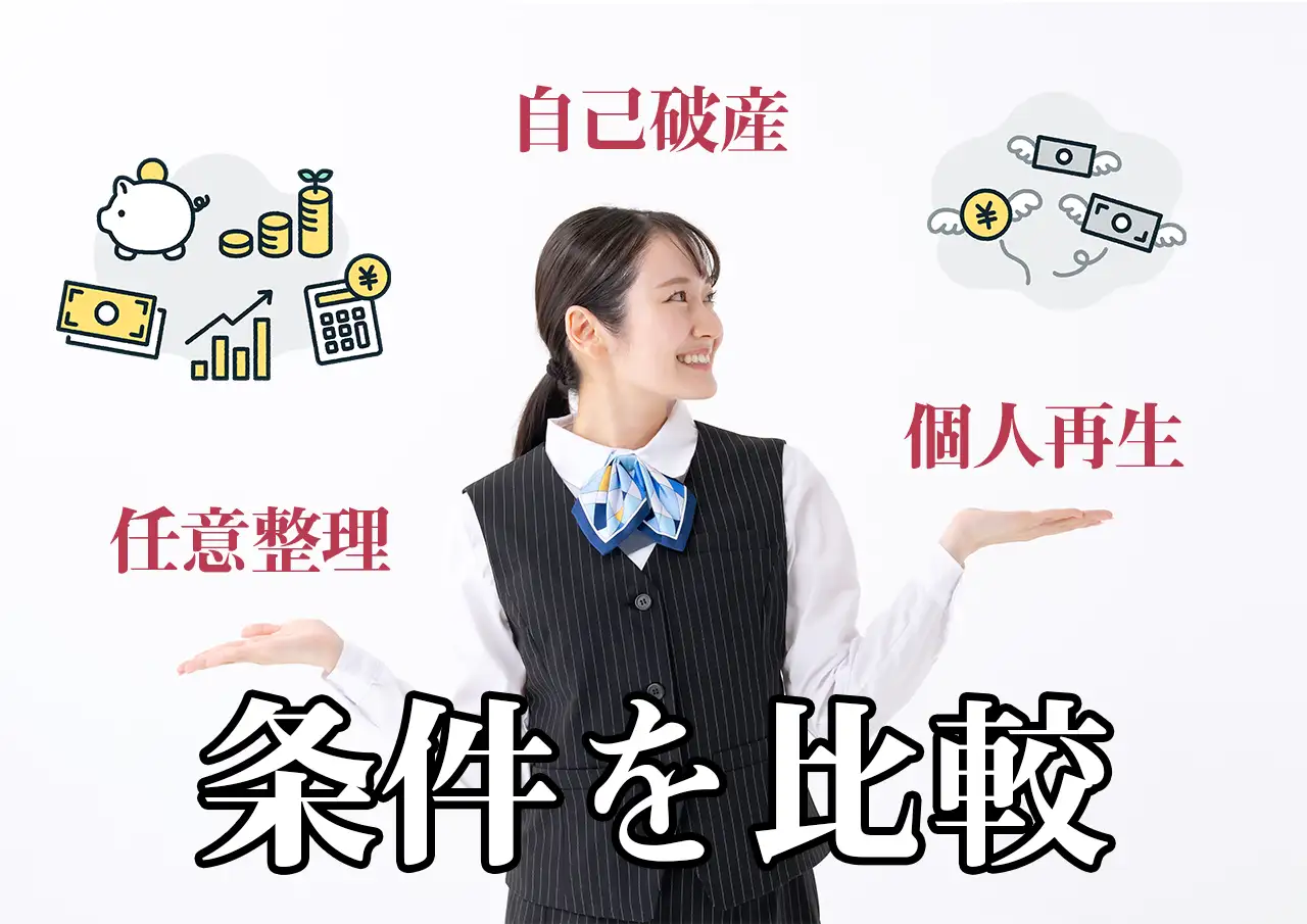 | 比較項目 | 任意整理 | 個人再生 | 自己破産 |